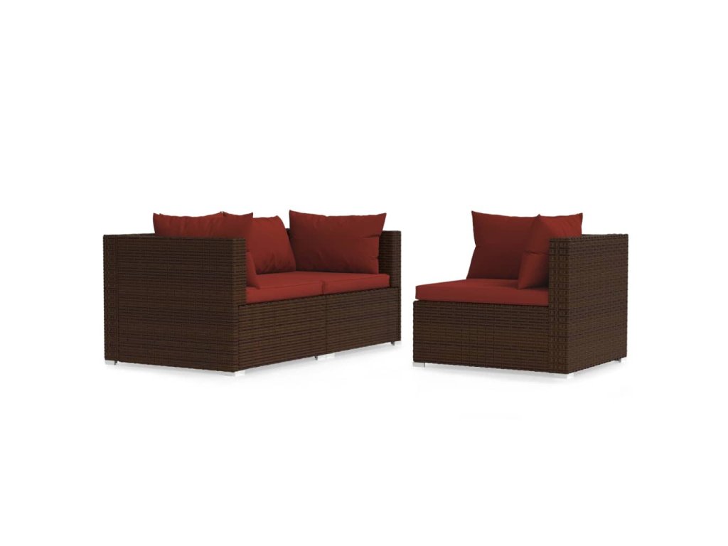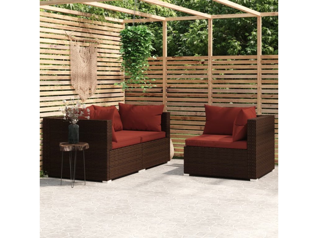 3dílná zahradní sedací souprava s poduškami hnědá polyratan 317549