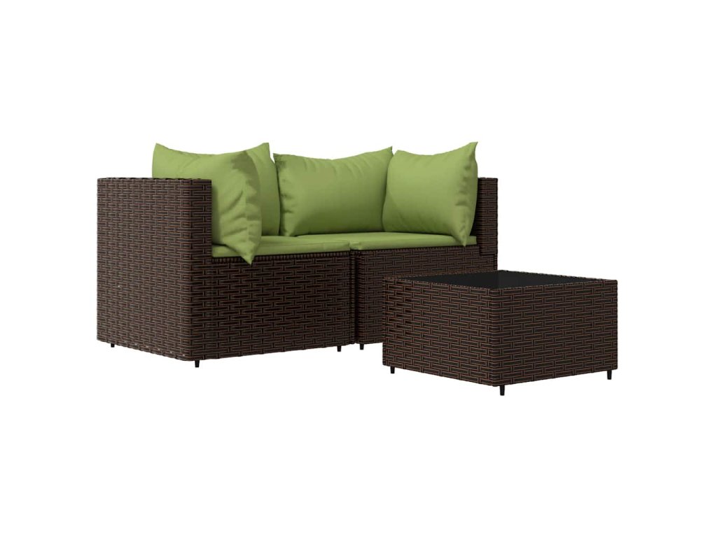 3dílná zahradní sedací souprava s poduškami hnědá polyratan 319827
