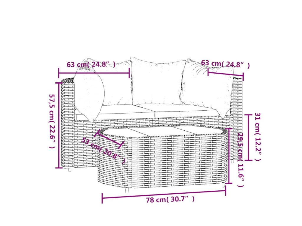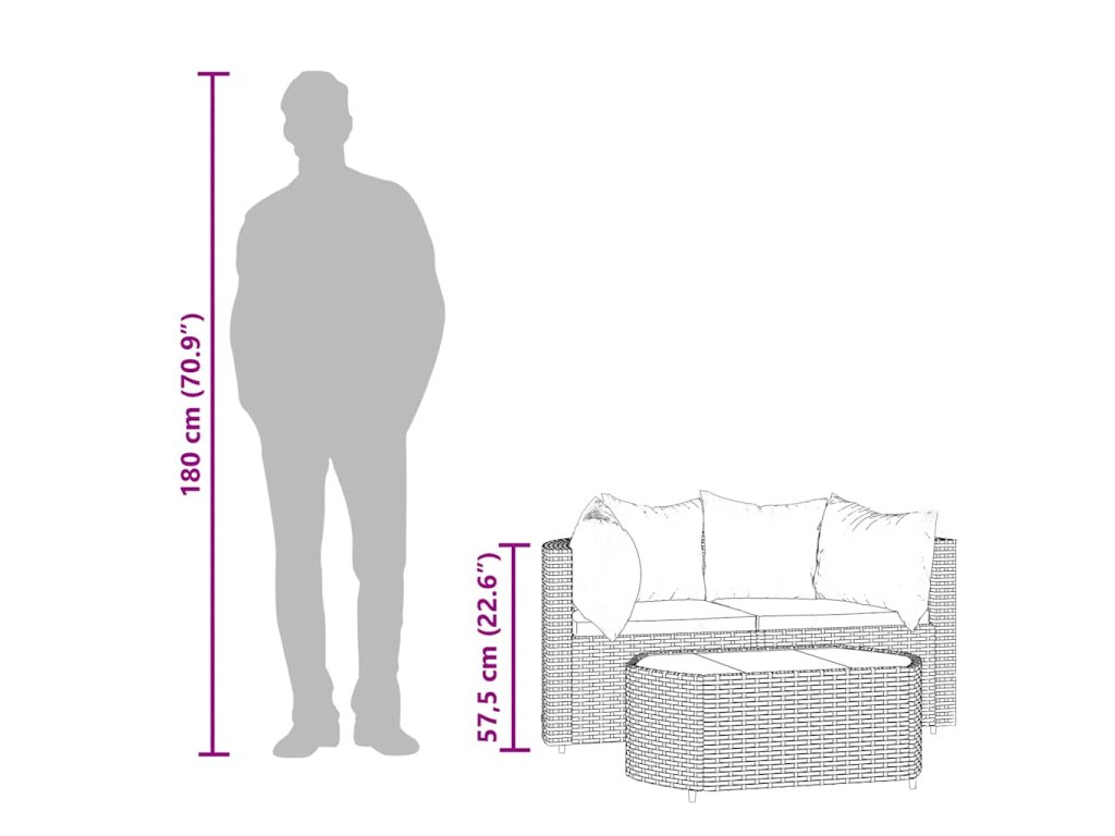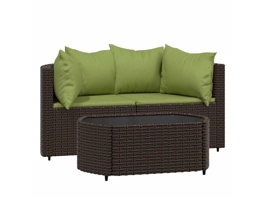 3dílná zahradní sedací souprava s poduškami hnědá polyratan 319839