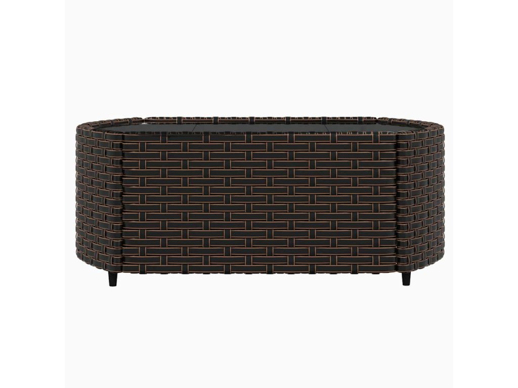 - Materiál: PE ratan, práškově lakovaná ocel, tkanina (100% polyester), tvrzené sklo