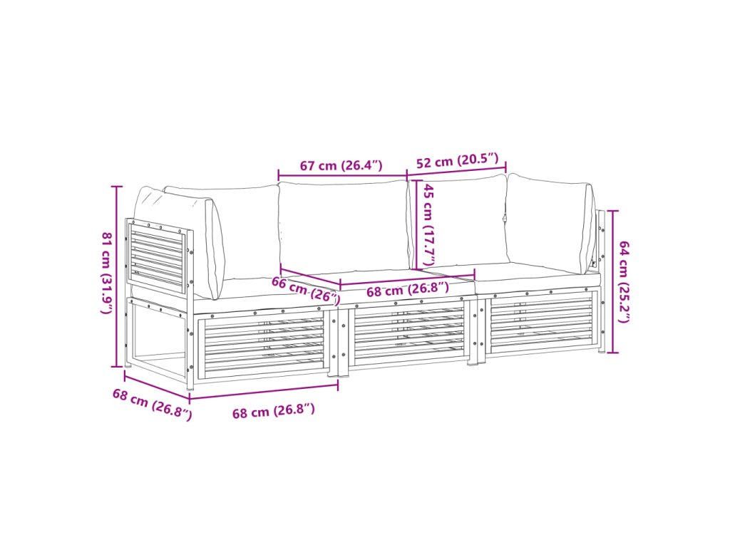 3dílná zahradní sedací souprava s poduškami masivní akácie 3214917