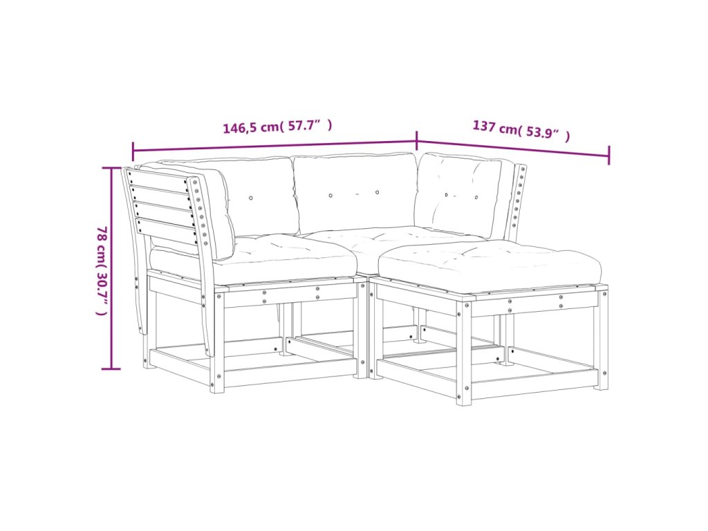 3dílná zahradní sedací souprava s poduškami masivní douglaska 3216993