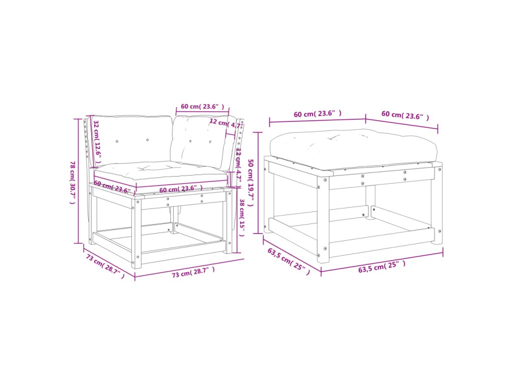 - Rozměry podušky na sedák: 60 x 60 x 12 cm (D x Š x T)