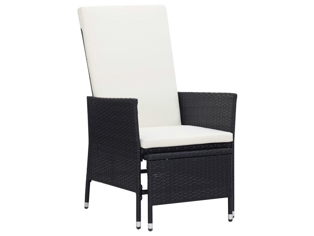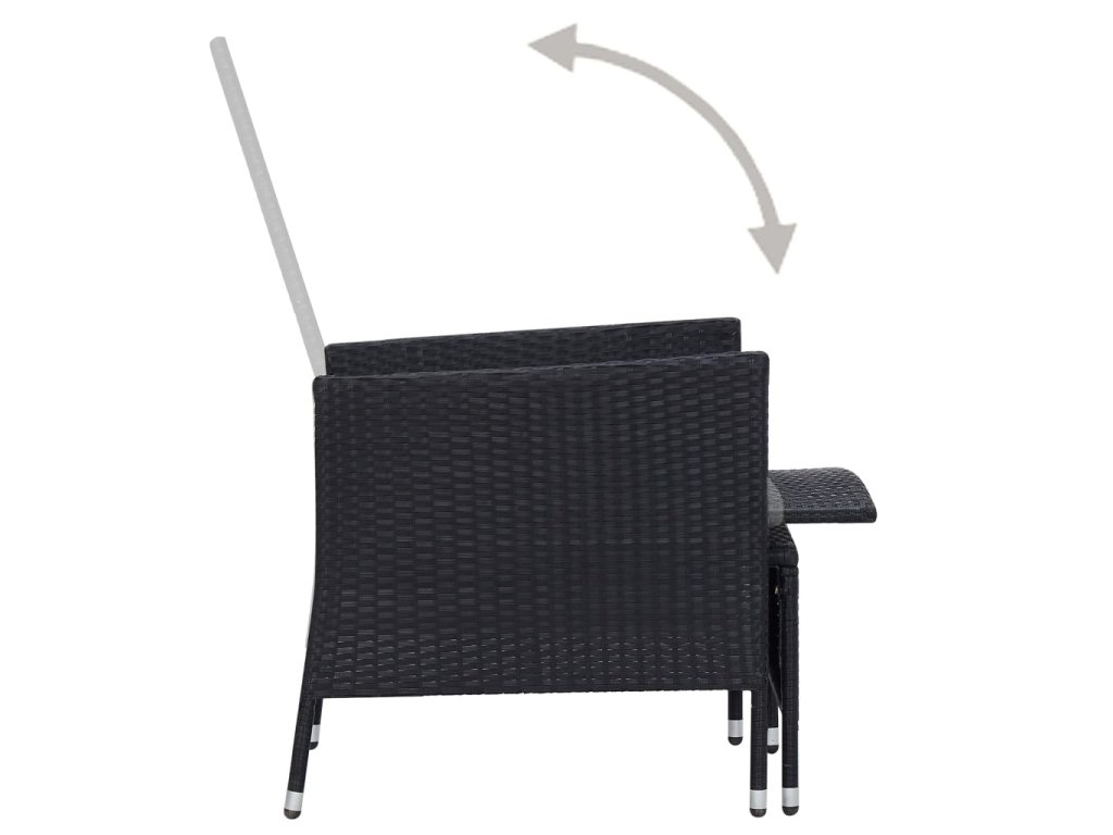 Zahradní sedací souprava má práškově lakovaný ocelový rám, potažený PE ratanem, je tedy robustní a snadno se čistí. Na silně polstrovaných poduškách se příjemně a pohodlně odpočívá. Potahy na poduškách mají zip, takže je můžete snadno sejmout a vyprat. Nohy si můžete natáhnout na podnožky, které se dají zastrčit pod židli, když je právě nepoužíváte. Opěradlo lze také sklopit a ochránit sedák před znečištěním. Navíc se vyznačuje lehkou konstrukcí z PE ratanu, dá se tedy snadno přemisťovat.