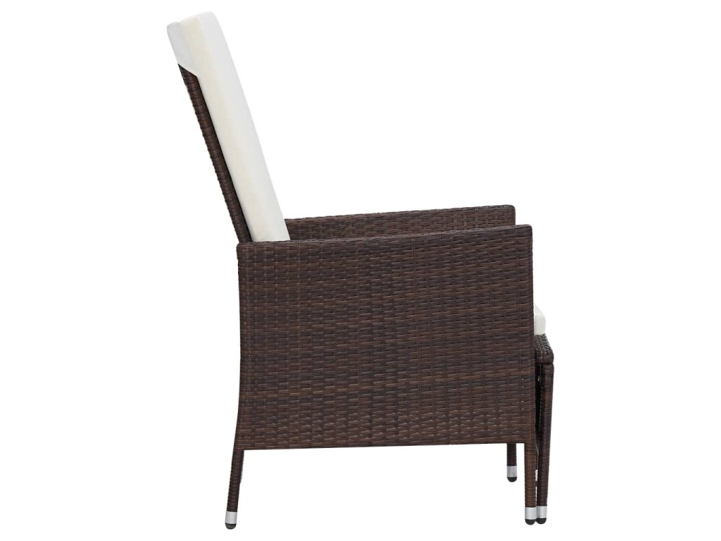 Tato zahradní sedací souprava má ocelový rám s práškovým nástřikem, na který je napletený PE ratan, takže je odolný a snadno se čistí. Silně polstrované podušky přinášejí vašemu lenošení extra pohodlí. Potahy na podušky se zipem jsou odnímatelné a pratelné. Nohy si můžete natáhnout na podnožky, které můžete zastrčit pod židli, když je právě nepoužíváte. Opěradlo lze také sklopit a ochránit sedák před znečištěním. Nábytek s lehkou PE ratanovou konstrukcí se snadnou přesouvá.