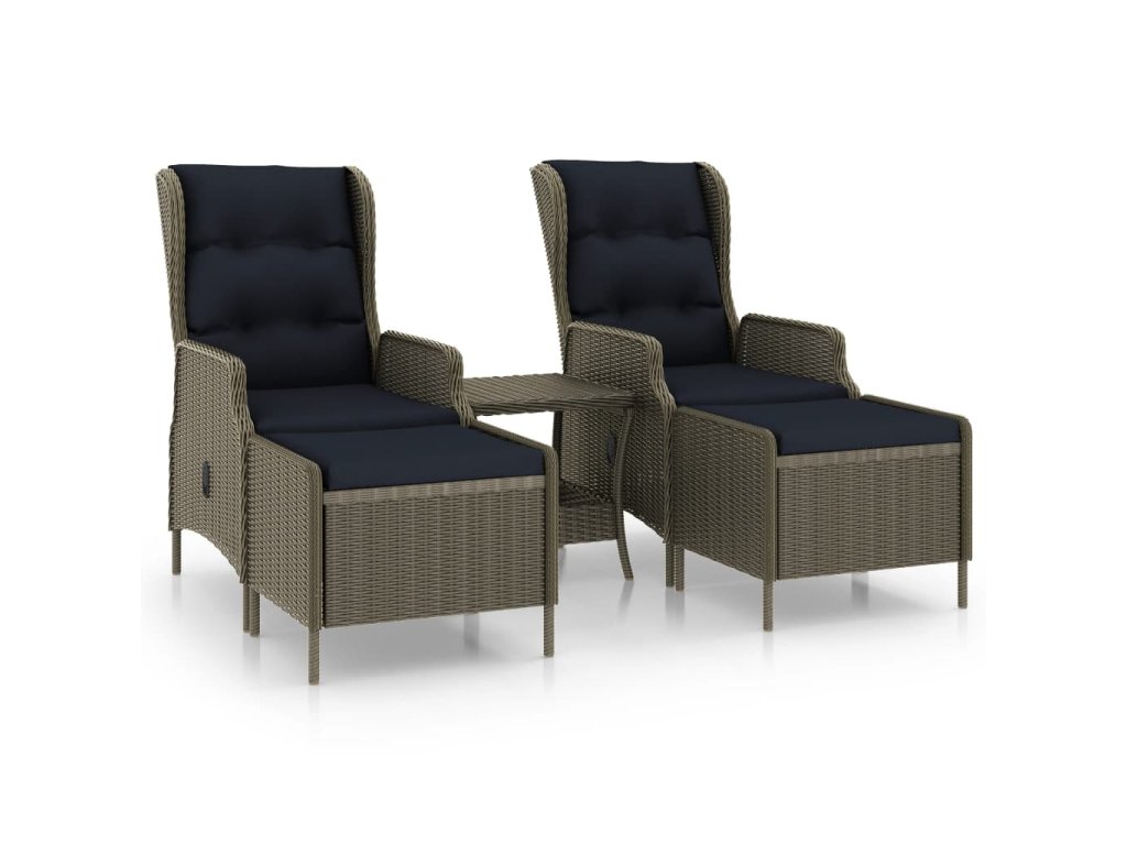 Zahradní polohovací křesla i čajový stolek mají rám z práškově lakované oceli opletený kulatým PE ratanem, takže jsou odolné a snadno se čistí. Hustě polstrované podušky vám při odpočinku zajistí zvýšené pohodlí. Jejich potahy jsou opatřené zipy, aby se daly sejmout a oprat. Mechanismus s plynovým pístem vám umožňuje sklopit opěradlo do preferované pozice. Stiskem bočního tlačítka ho můžete nastavit až do příjemné polohy vleže. Židle je jako stvořená pro relaxaci, zvlášť když si položíte nohy na ladící podnožku. Navíc si ji můžete postavit, kam se vám zlíbí. Robustní stolní deska vám skvěle poslouží k odkládání či vystavování nejrůznějších věcí. Sedací souprava má lehkou konstrukci, lze ji tedy bez námahy přesouvat z místa na místo.