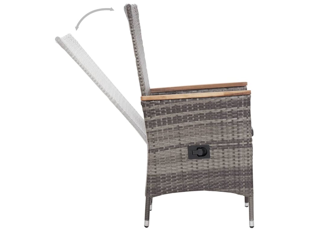 Křesla a konferenční stolek jsou vyrobené z voděodolného PE ratanu, snadno se čistí, jsou odolné a vhodné pro každodenní použití. Zahradní sestava s rámem z práškově lakované oceli je pevná a robustní. Čajový stolek má také skleněnou desku, která se snadno čistí, a spodní police nabízí další úložný prostor. Sklápěcí křesla vám poskytnou veškeré potřebné pohodlí, sklon opěradla snadno nastavíte pomocí postranního tlačítka. Nábytek má lehkou konstrukci, takže se snadno přesouvá. Sestavu dodáváme s vysoce komfortní, hustě polstrovanou poduškou na sedáku pro maximální pohodlí. Nízkoúdržbové polyesterové potahy lze snadno sejmout a vyprat.