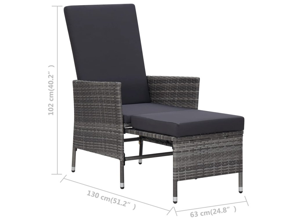 Zahradní sedací souprava má práškově lakovaný ocelový rám, potažený PE ratanem, je tedy robustní a snadno se čistí. Na silně polstrovaných poduškách se příjemně a pohodlně odpočívá. Potahy na poduškách mají zip, takže je můžete snadno sejmout a vyprat. Nohy si můžete natáhnout na podnožky, které se dají zastrčit pod židli, když je právě nepoužíváte. Opěradlo lze také sklopit a ochránit sedák před znečištěním. Navíc se vyznačuje lehkou konstrukcí z PE ratanu, dá se tedy snadno přemisťovat.