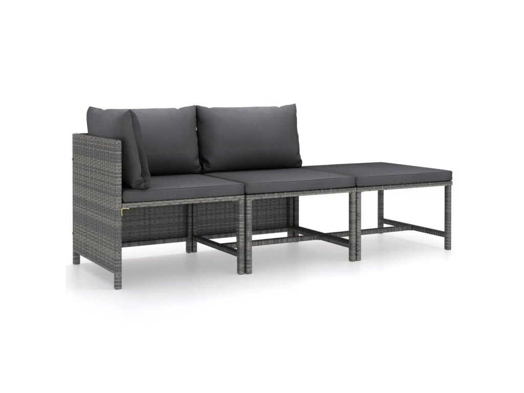 3dílná zahradní sedací souprava s poduškami polyratan šedá 3059751