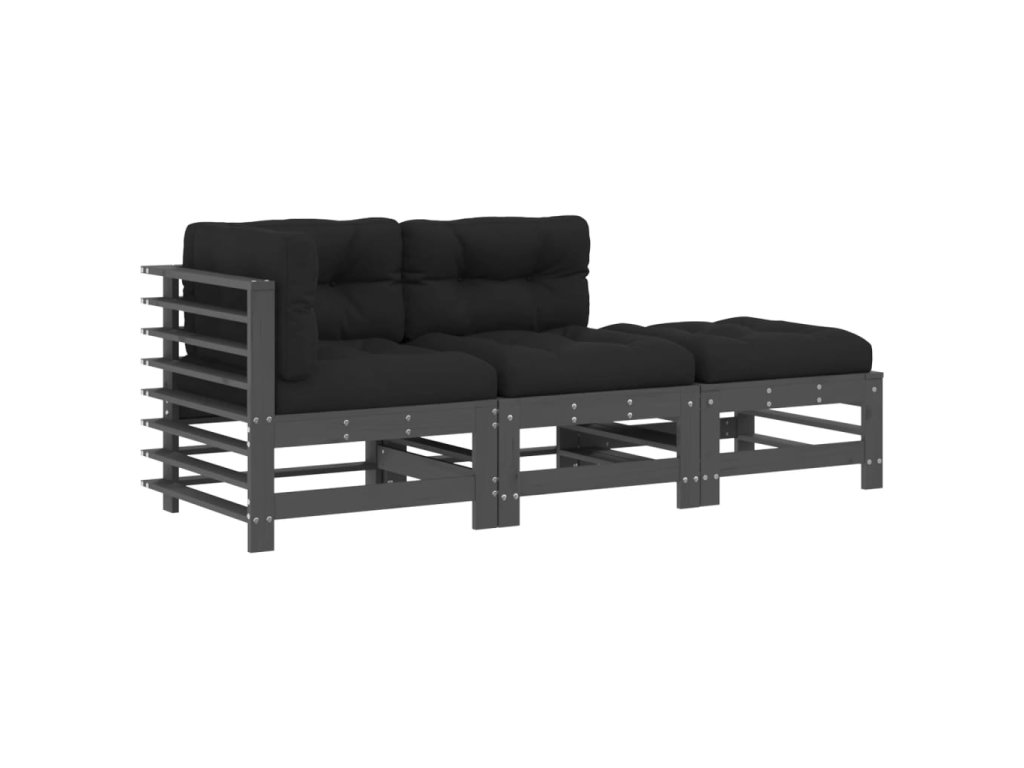 3dílná zahradní sedací souprava s poduškami šedá masivní dřevo 3186034