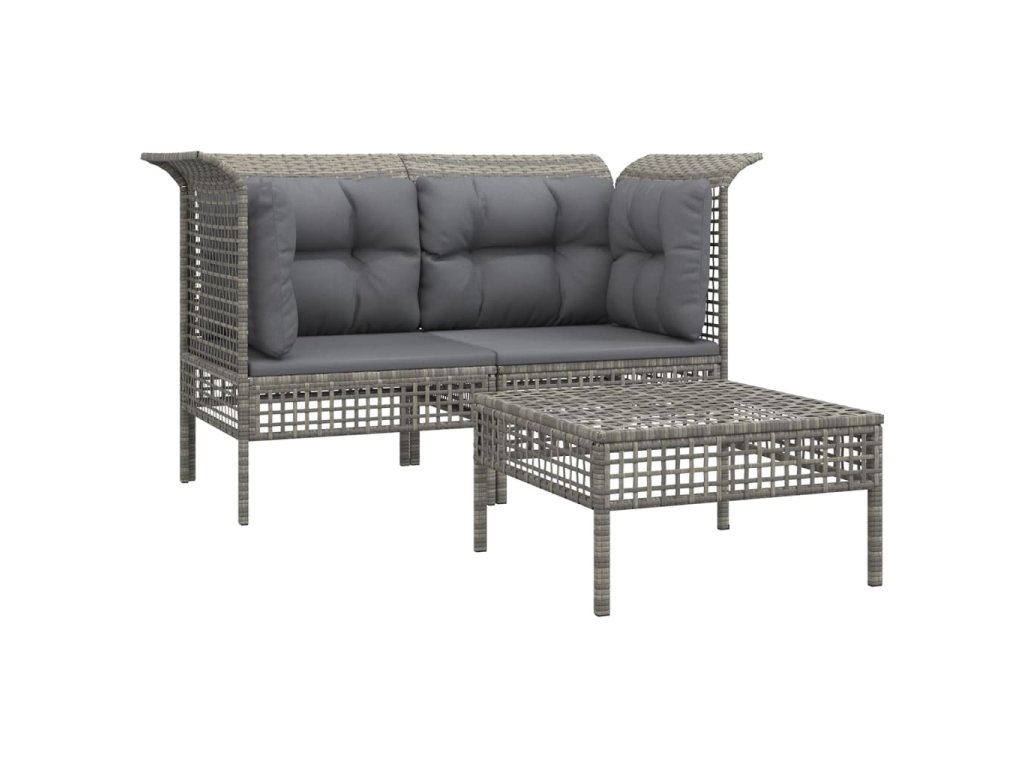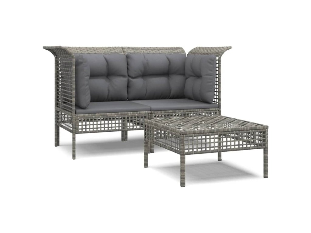 3dílná zahradní sedací souprava s poduškami šedá polyratan 3187473