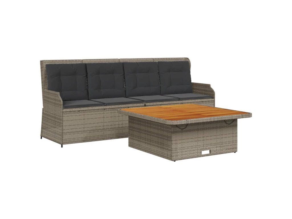 - Materiál: PE ratan, práškově lakovaná ocel, masivní akáciové dřevo s olejovou povrchovou úpravou