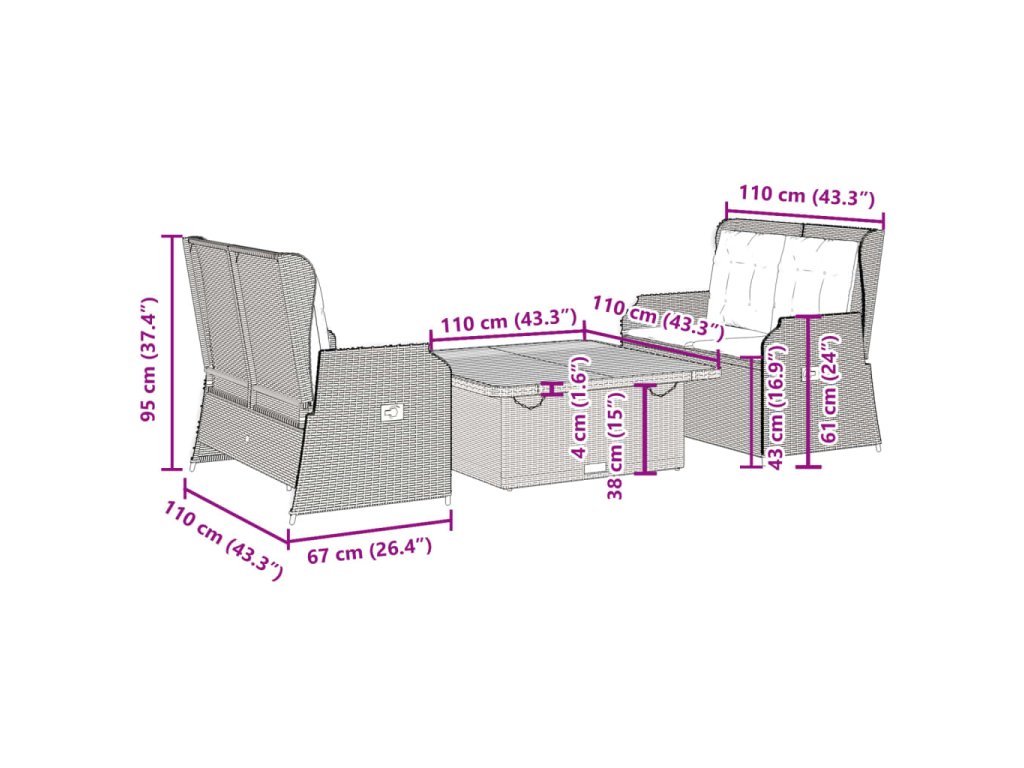 Tato zahradní sedací souprava je dokonalým doplňkem vaší zahrady, terasy nebo dvorku a poskytne vám pohodlné a příjemné místo, kde si můžete povídat s rodinou a přáteli nebo jen tak odpočívat a užívat si pobyt venku.