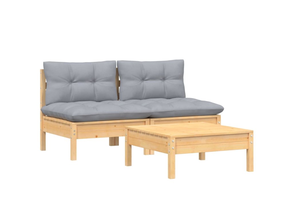 3dílná zahradní sedací souprava s šedými poduškami borovice 3095997