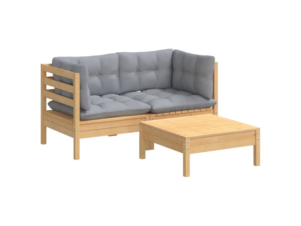 3dílná zahradní sedací souprava s šedými poduškami borovice 3096015