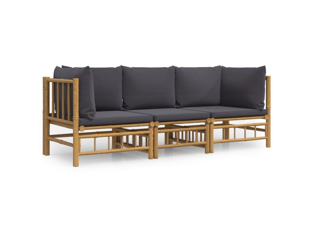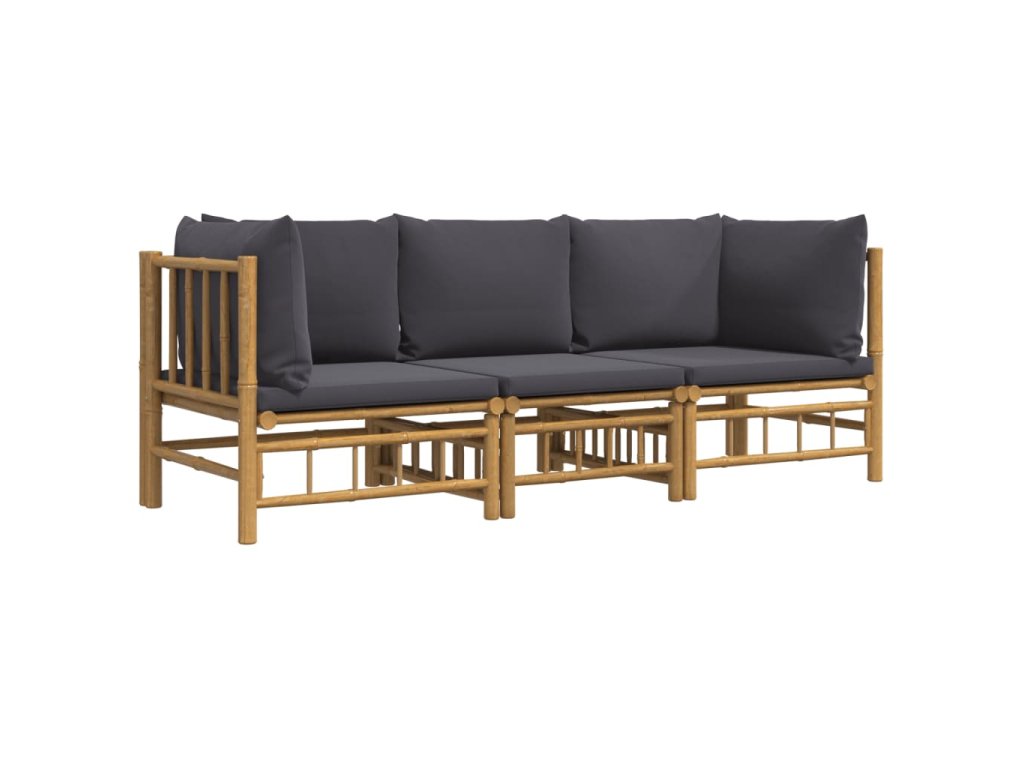 3dílná zahradní sedací souprava s tmavě šedými poduškami bambus 3155215