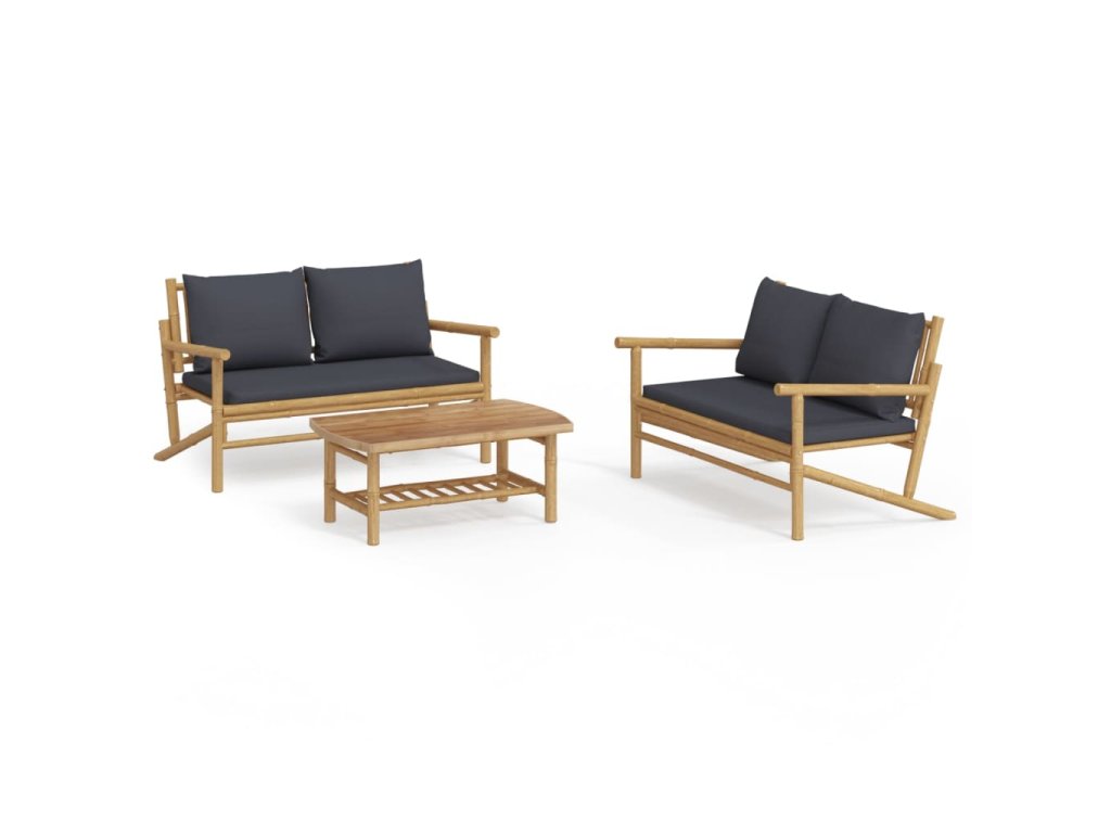 3dílná zahradní sedací souprava s tmavě šedými poduškami bambus 3156472