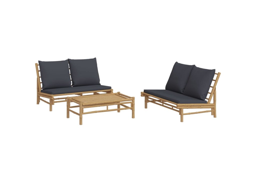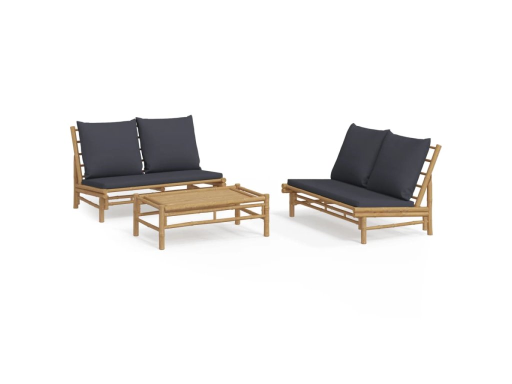 3dílná zahradní sedací souprava s tmavě šedými poduškami bambus 3156482