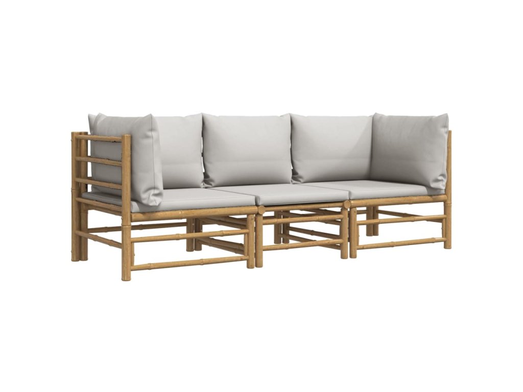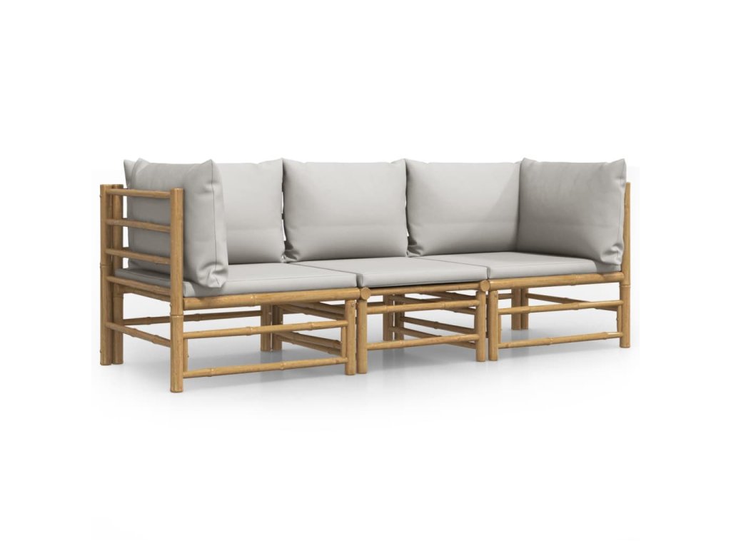 3dílná zahradní sedací souprava světle šedé podušky bambus 3155087
