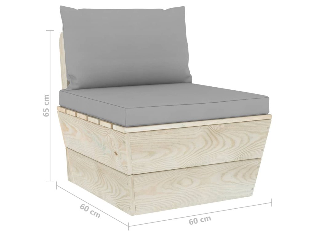 Zahradní sedací souprava je vyrobená z impregnovaného smrkového dřeva, takže je velice odolná a stabilní. Má pevnou konstrukci a nevyžaduje téměř žádnou údržbu. Podušky na paletový nábytek jsou čalouněné 100% polyesterem a hustě polstrované, takže jsou nesmírně měkké a zajistí vám maximální pohodlí. Zahradní pohovky mají modulární design, a tak je můžete přizpůsobit každému prostředí dle svých představ.