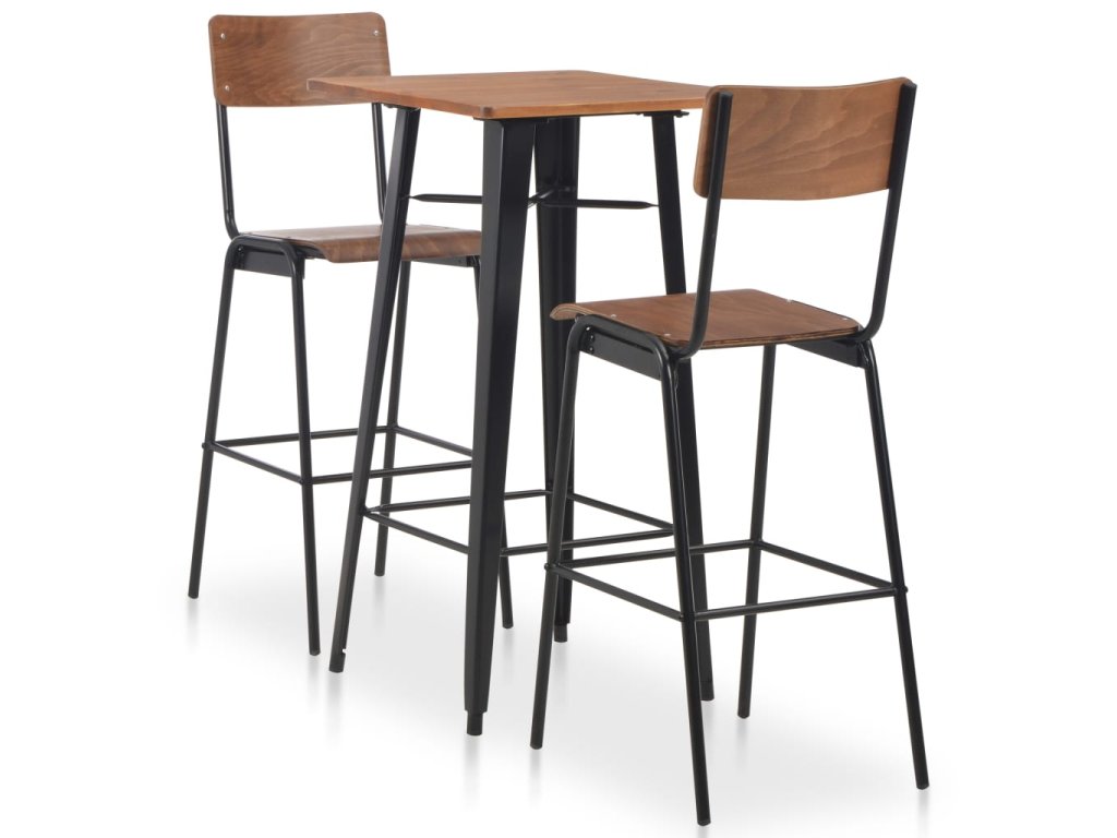 3dílný barový jídelní set ocelový hnědo-černý 276847