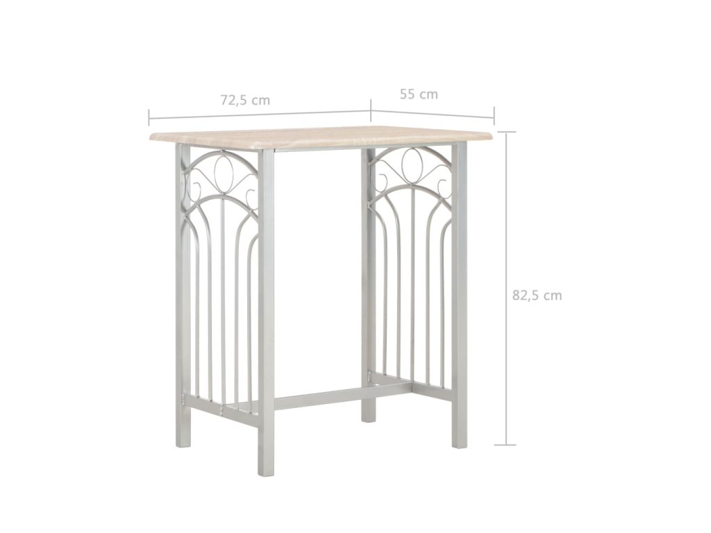 Jelikož je vyrobený ze dřeva, jeho povrch se snadno čistí. Ocelové rámy zajišťují výtečnou stabilitu. Když set právě nepoužíváte, můžete židle zasunout pod stůl. Barové stoličky v sobě mají rovněž zapuštěné opěrky nohou ve dvou různých výškových úrovních, o to lépe se vám na nich tedy bude sedět.