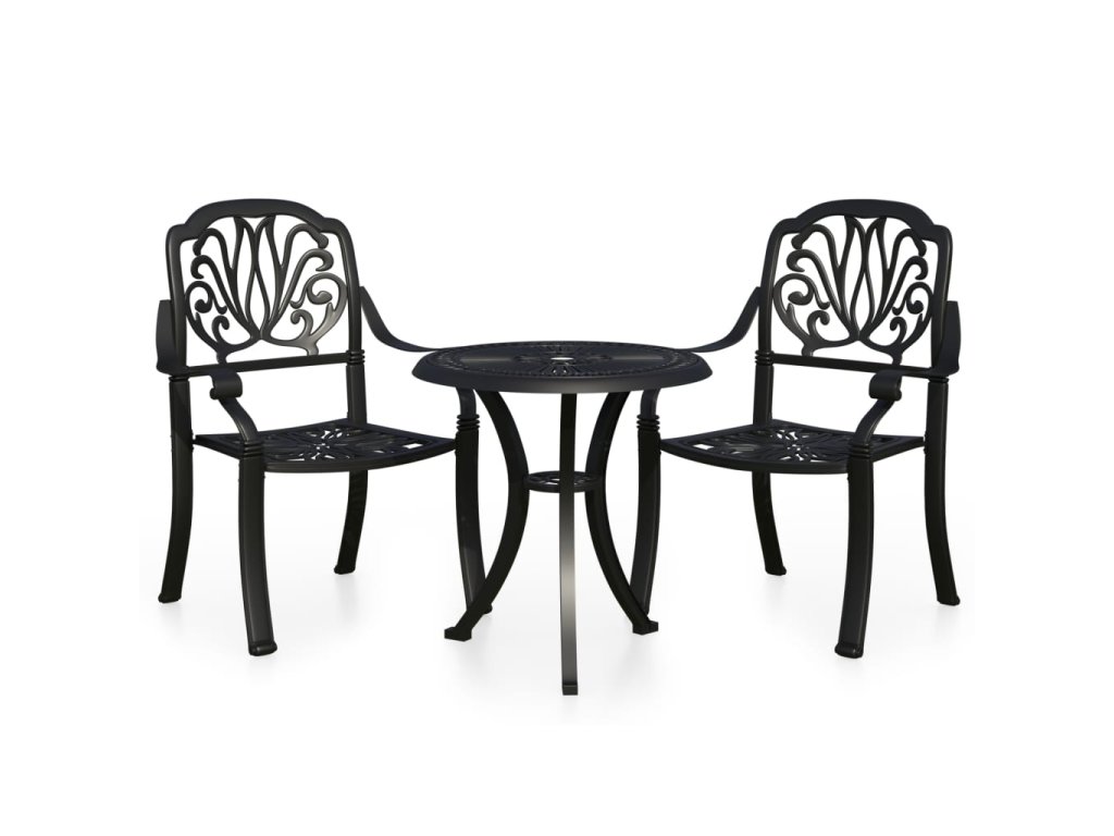 Zahradní stůl a židle z litého hliníku jsou robustní a hodně toho vydrží. Jelikož jsou vyrobené z materiálu, který nerezaví a nepodléhá klimatickým vlivům, jedná se o ideální nábytek pro venkovní použití. Vzhledem ke svému překrásnému designu zapůsobí bistro set ve vašem venkovním bydlení jako elegantní doplněk. Konferenční stolek má navíc uprostřed otvor, kam můžete zasunout slunečník, abyste se ochránili před sluníčkem či deštěm.