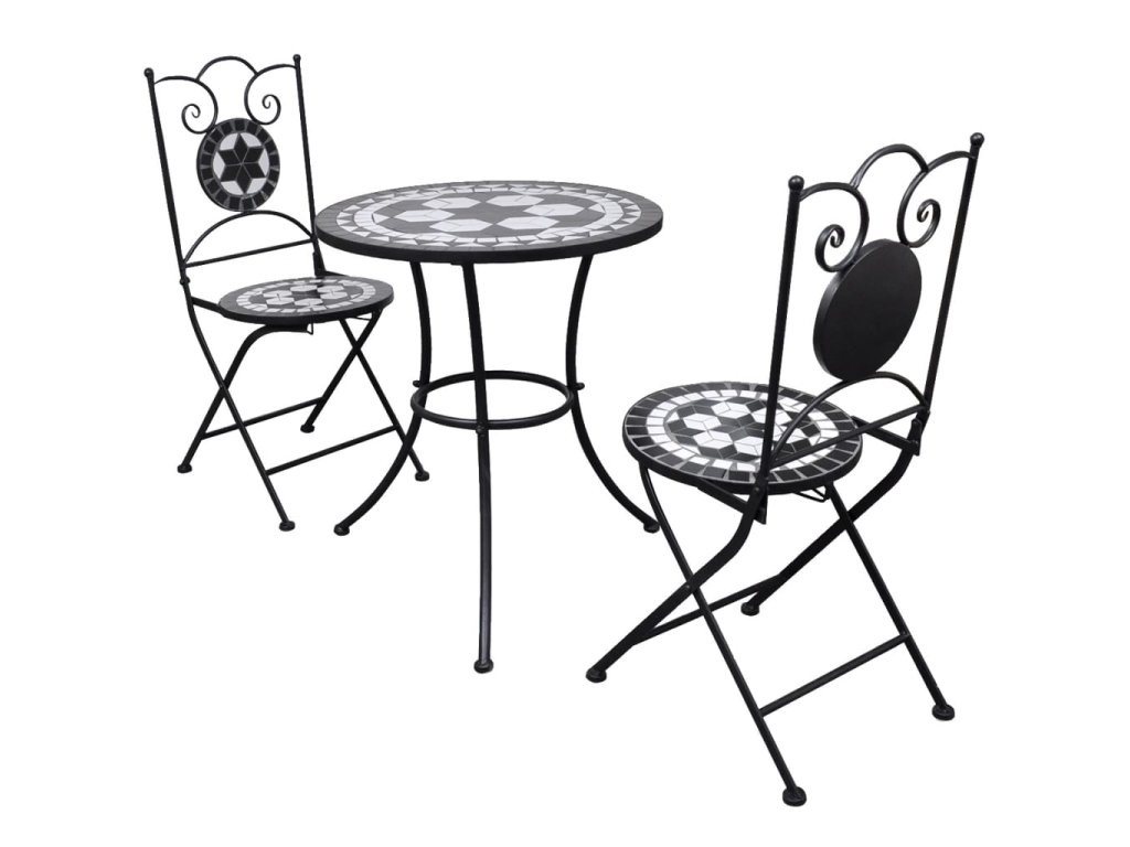 3dílný bistro set mozaikový keramický černý a bílý 271772