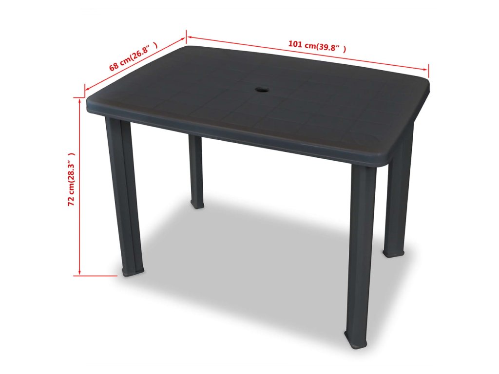 Zahradní stůl má uprostřed otvor na slunečník, který si můžete roztáhnout a užívat si odpočinku v chládku. Opěradla židlí jsou polohovatelná do 4 pozic, takže se v nich můžete pohodlně usadit. Pokud židle zrovna nepotřebujete, můžete je složit a ušetřit tak prostor. Sada je vyrobena z odolného plastu. Díky tomu se stůl i židle snadno čistí a odolávají rozmarům počasí. Sada je mimo to velmi lehká a snadno se přenáší.