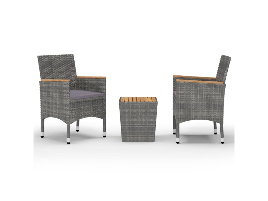 3dílný bistro set polyratan a akáciové dřevo šedý 3058367