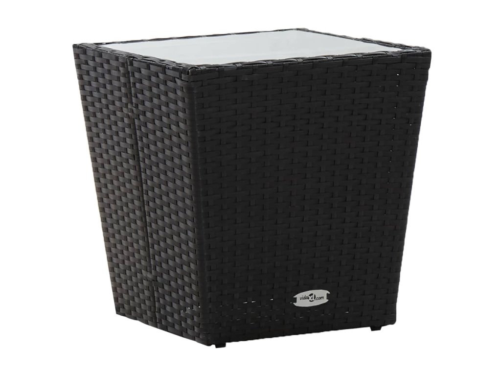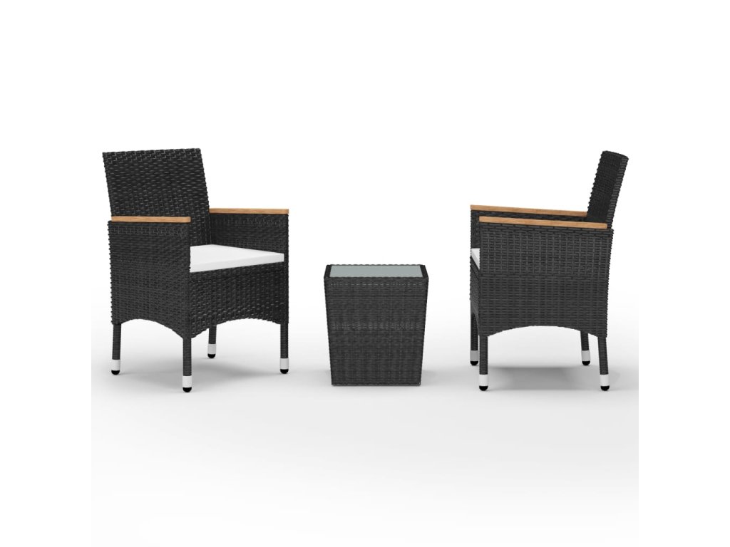 3dílný bistro set polyratan a tvrzené sklo černý 3058364