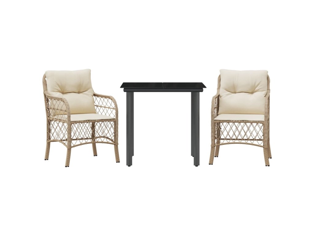 3dílný bistro set s poduškami béžový polyratan 3212145
