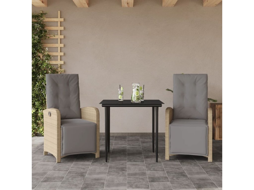 3dílný bistro set s poduškami béžový polyratan 3212584
