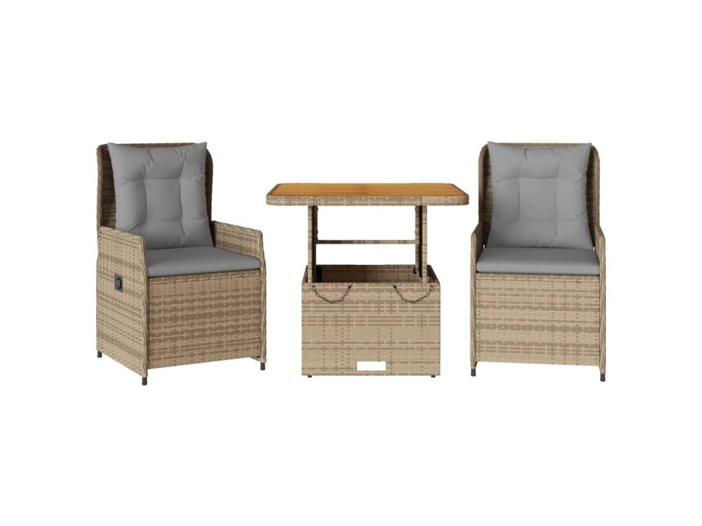 3dílný bistro set s poduškami béžový polyratan 3262771