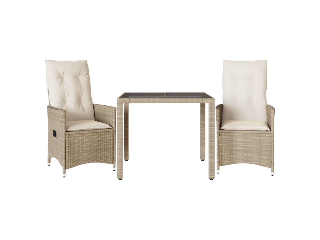 3dílný bistro set s poduškami béžový polyratan 3276799
