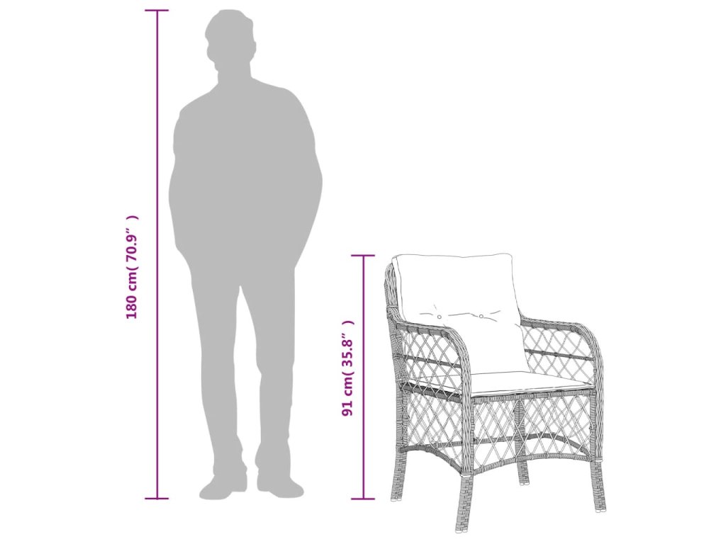 3dílný bistro set s poduškami hnědý polyratan 3212110