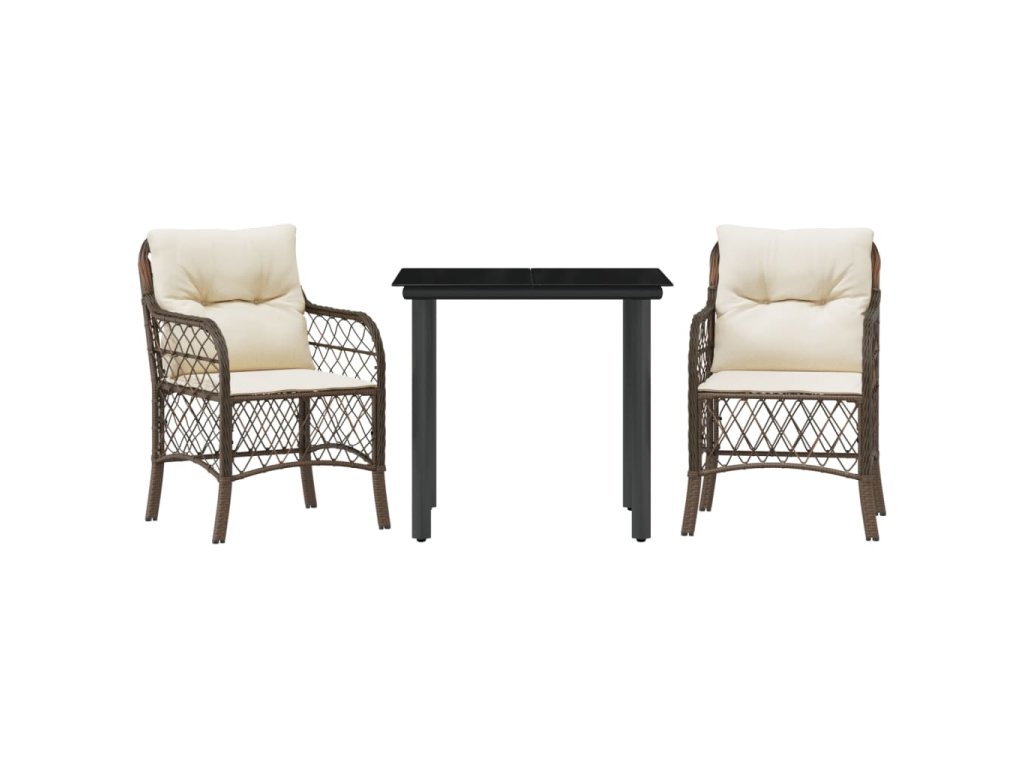 3dílný bistro set s poduškami hnědý polyratan 3212117