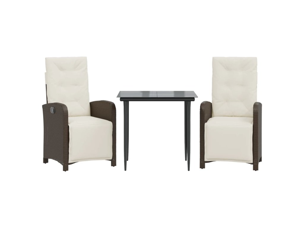 3dílný bistro set s poduškami hnědý polyratan 3212542