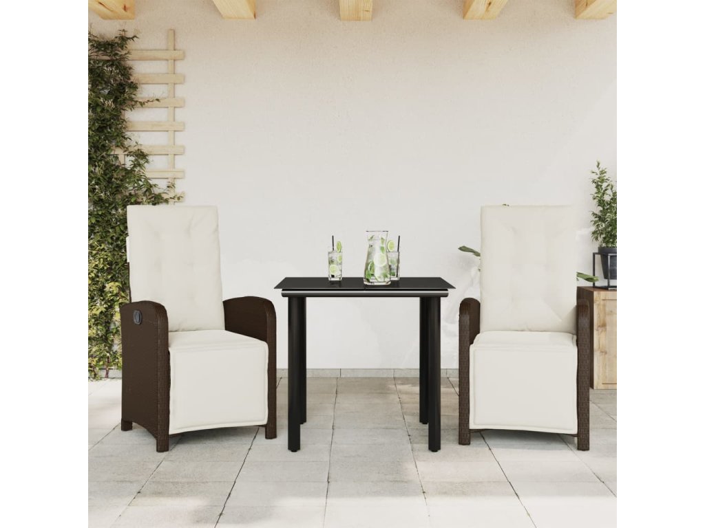 3dílný bistro set s poduškami hnědý polyratan 3212549