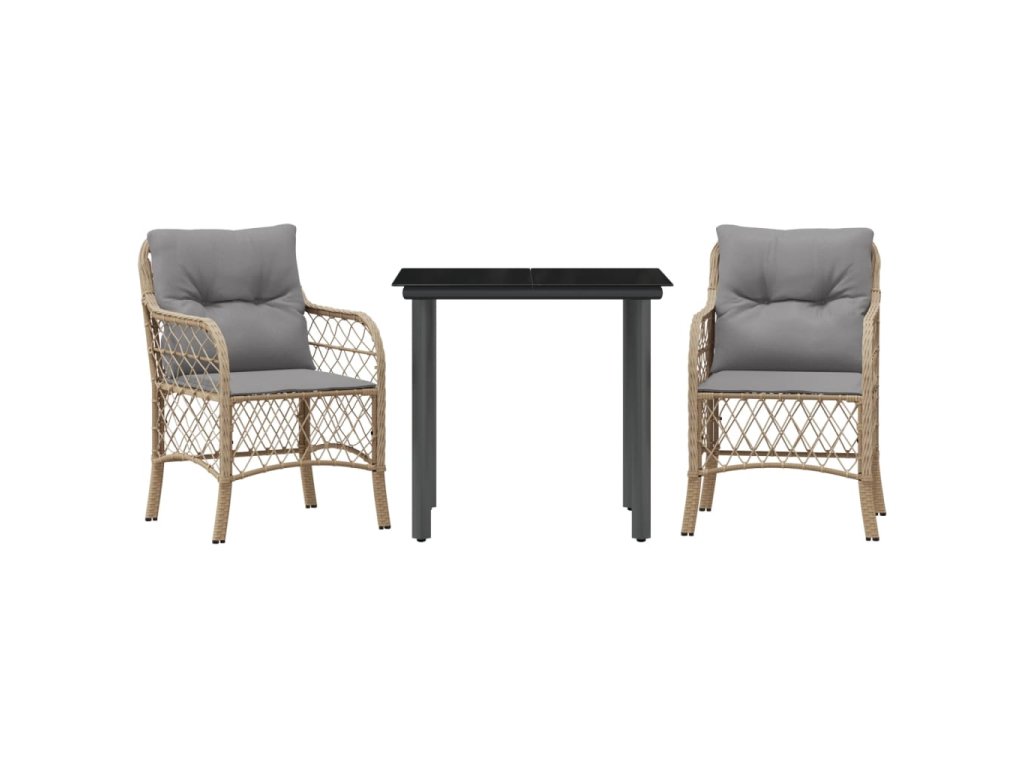 3dílný bistro set s poduškami mix béžové polyratan 3212159