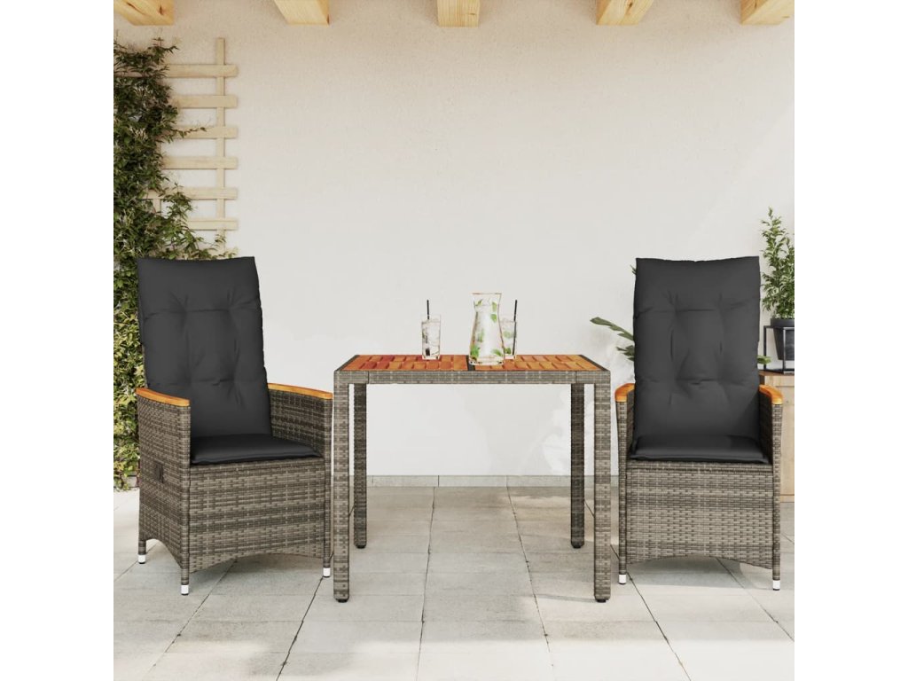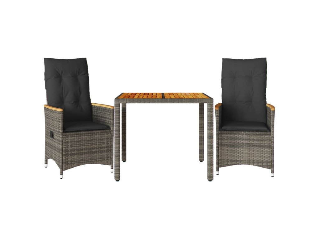 3dílný bistro set s poduškami šedý polyratan 3276843
