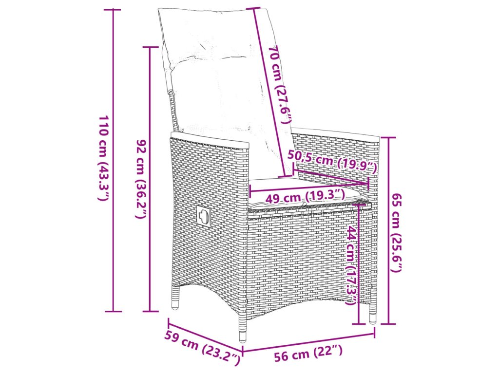 - Rozměry při poloze vsedě: 56 x 59 x 92 cm (Š x H x V)
