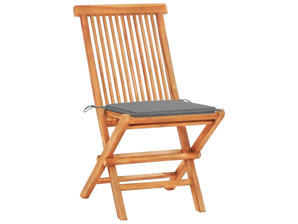 3dílný bistro set se šedými poduškami masivní teakové dřevo 3063226