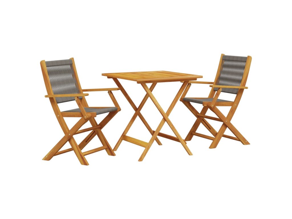 3dílný bistro set šedý polypropylen a masivní dřevo 3281878