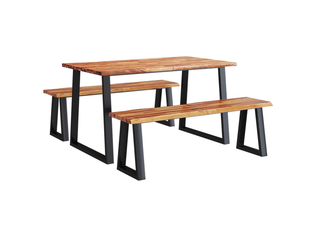 3dílný jídelní set s živou hranou masivní akáciové dřevo 3157525