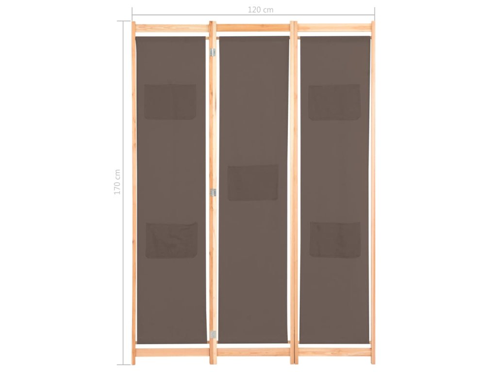 3dílný paraván hnědý 120 x 170 x 4 cm textil 248179