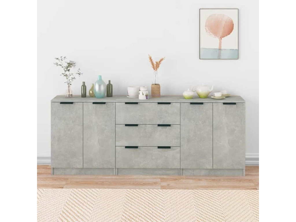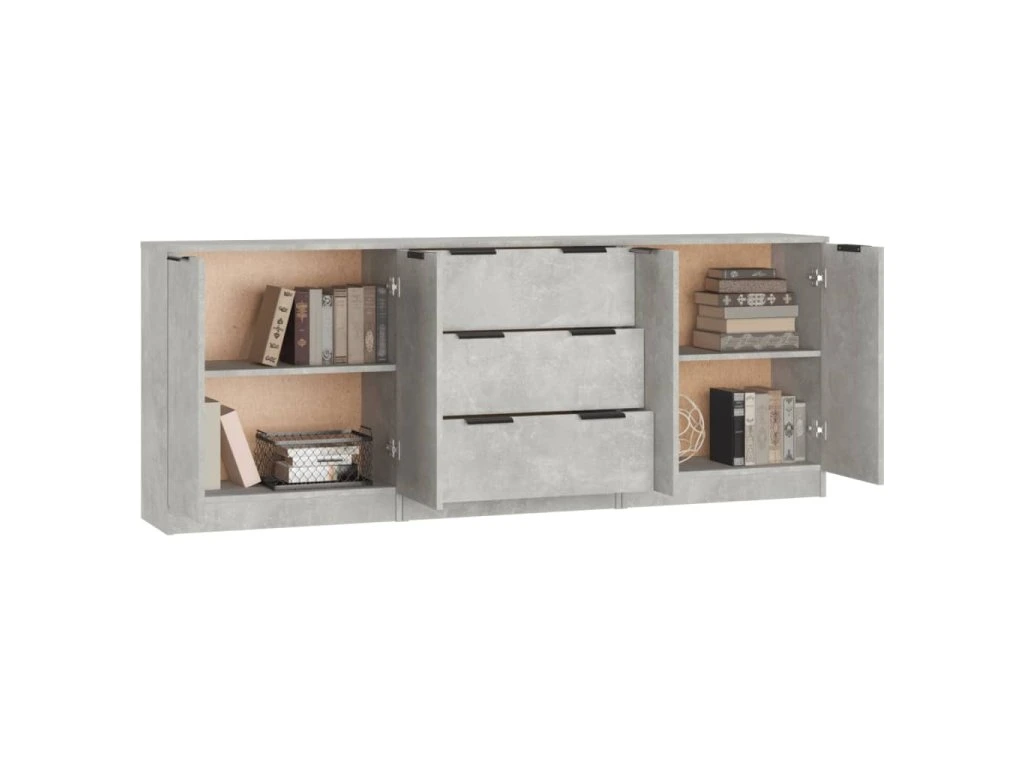 3dílný příborník betonově šedý kompozitní dřevo 3115783