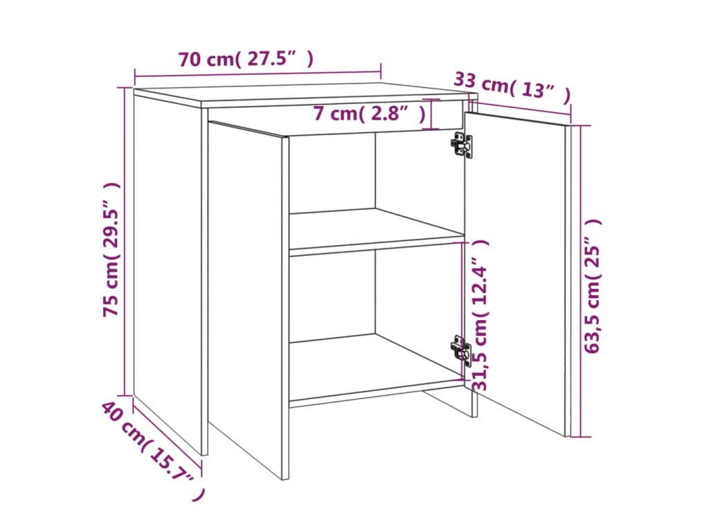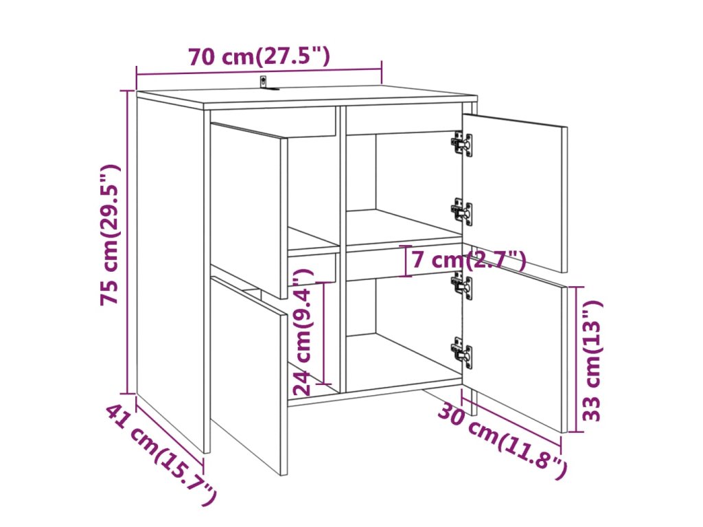 - Rozměry příborníku s policemi: 70 x 40,5 x 75 cm (Š x H x V)