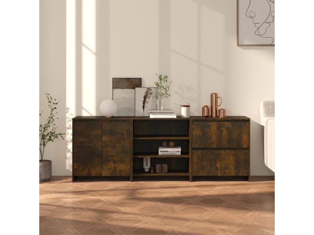 3dílný příborník kouřový dub kompozitní dřevo 3098078