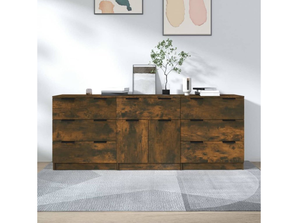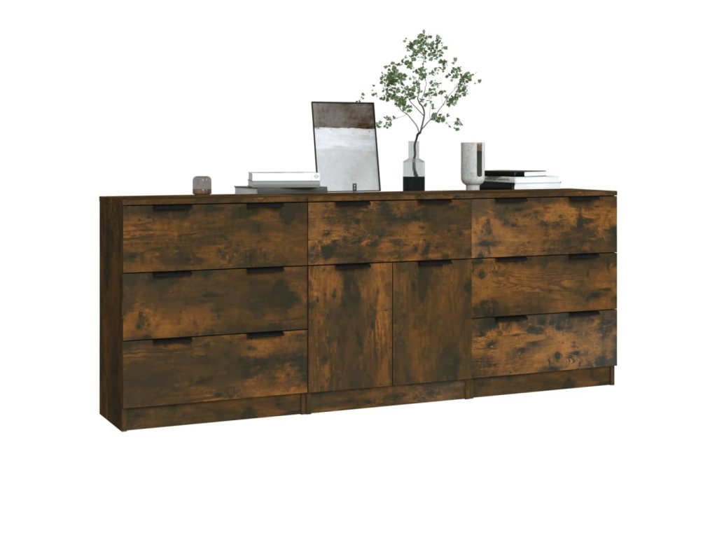 3dílný příborník kouřový dub kompozitní dřevo 3115801